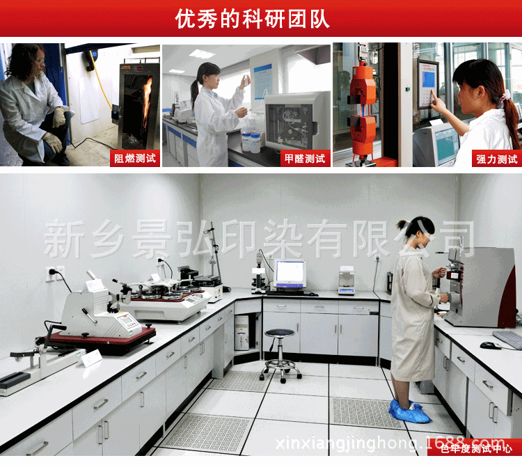 2.**的研發團隊:推動景弘技術開發和產品**進程;并擁有經過UL檢測機構**培訓、對檢測精益求精的檢測人員,您可以放心把面料交給我們。供應給您的面料是經過兩個獨立的檢測體系(工廠自檢、實驗室檢測)檢測的,可以放心使用。